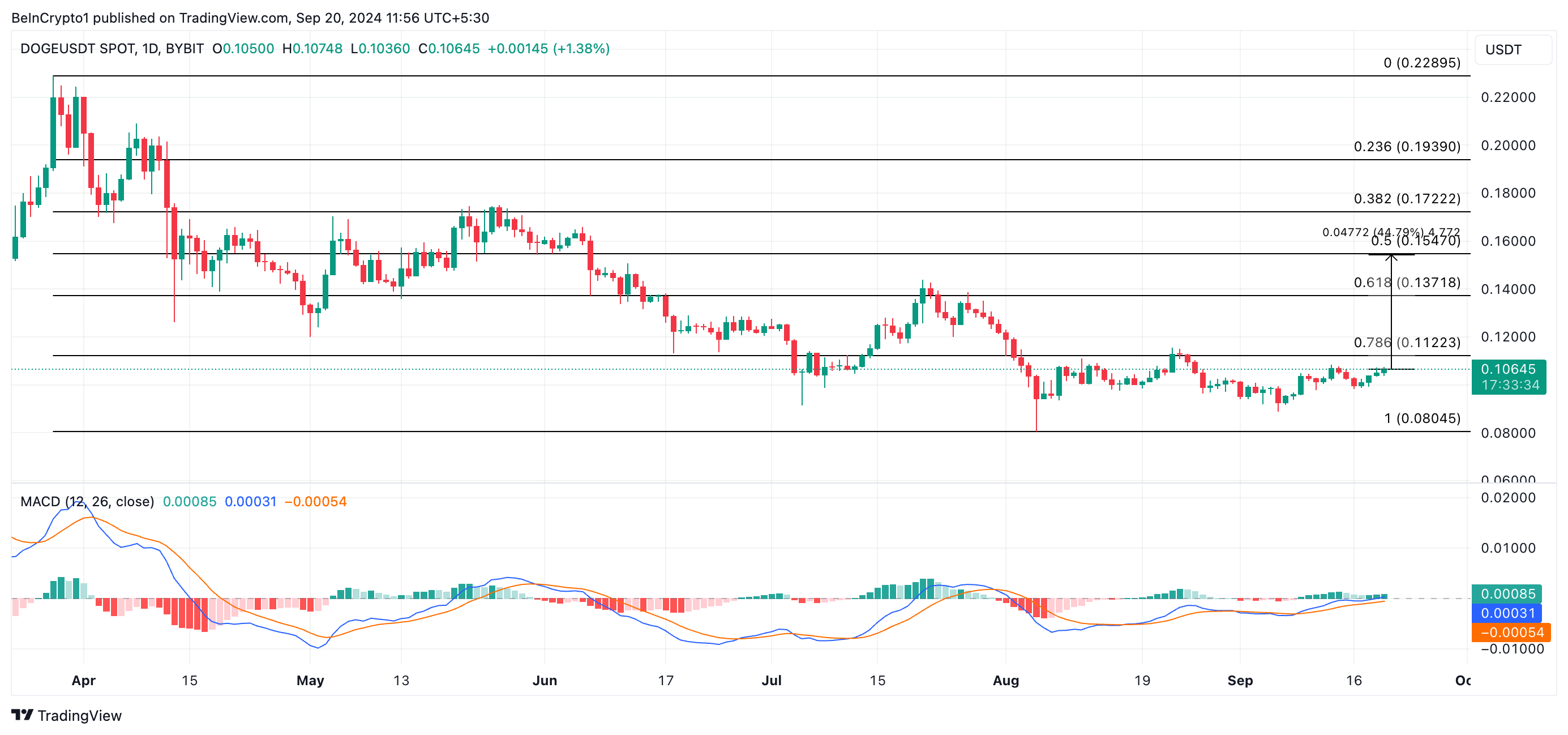 Si este impulso continúa, DOGE podría estar en camino de alcanzar los 0.15 dólares, nivel en el que se negoció por última vez en junio. Su configuración técnica en un gráfico diario sugiere que esto podría ser posible. Aquí está cómo.