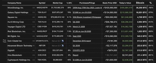 Una reciente investigación de Trustnodes publicada el 22 de octubre revela que las grandes empresas han invertido alrededor de 10 mil millones de dólares en Bitcoin, lo cual demuestra un creciente interés institucional en la criptomoneda como protección contra la inflación y la crisis económica. Un gráfica compartida en la publicación muestra los principales inversores institucionales: