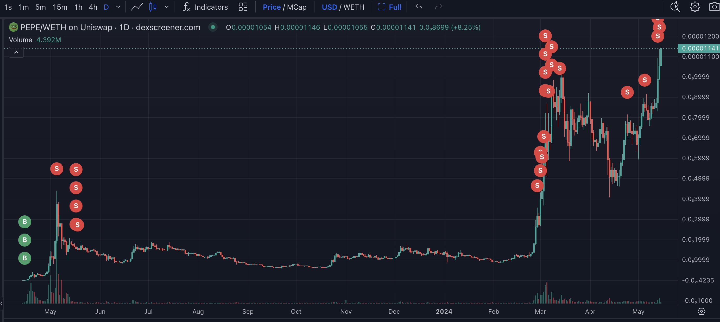 A medida que el precio de PEPE se disparó, el valor de su inversión también lo hizo. Posteriormente, decidió vender 1,41 billones de PEPE por 7,4 millones de dólares, obteniendo una ganancia significativa. Sin embargo, conservó 3,5 billones de PEPE, cuyo valor actual asciende a 38,9 millones de dólares.