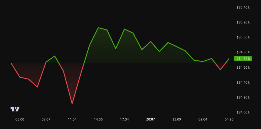 Según datos de BeInCrypto, Bitcoin cotiza 84,719 dólares a tras mantenerse prácticamente estable en las últimas 24 horas.