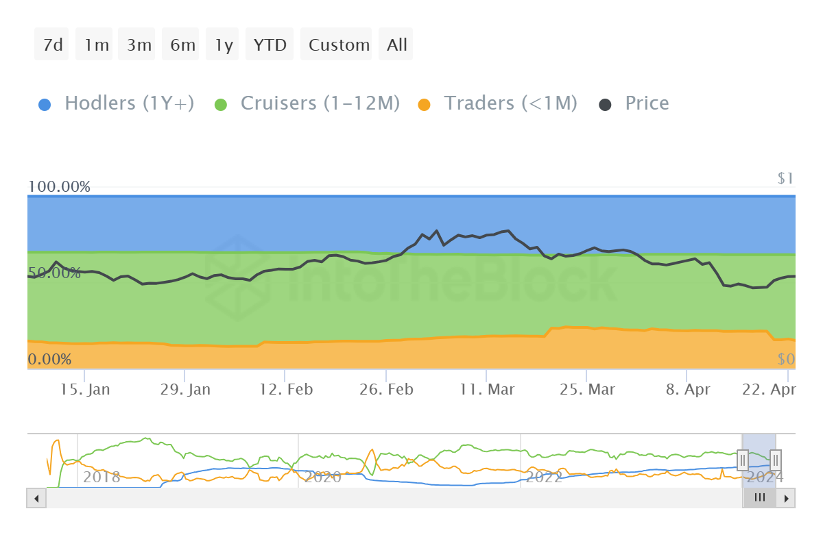 Por lo general, los inversores a corto plazo tienden a vender sus activos, lo que hace que su predominio en la oferta de ADA sea preocupante.