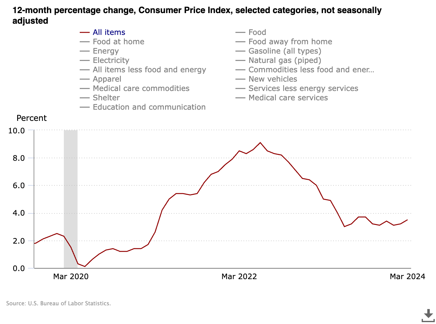 El Índice de Precios al Consumidor (IPC) de EE.UU. subió un 0.4% en marzo y alcanzó el 3.5% en el último año. Esta cifra sigue siendo históricamente alta y ha cambiado significativamente el valor del dólar en comparación con hace una década, cuando la tasa de inflación era de sólo el 0,8%.