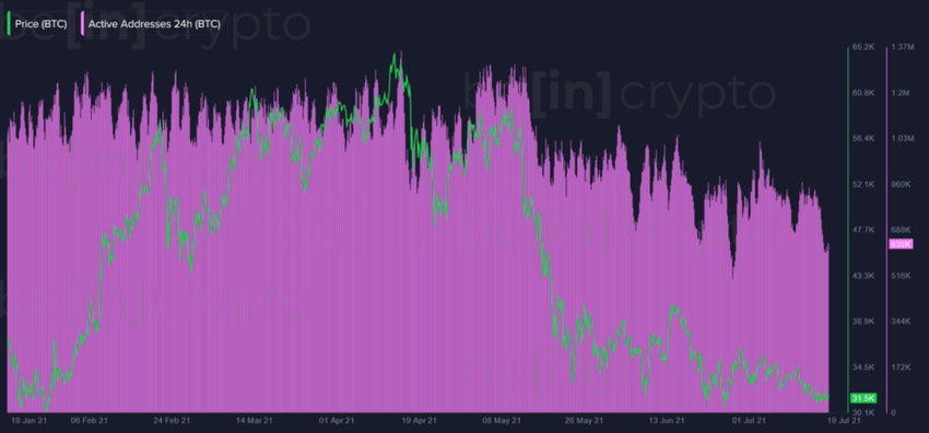 Desde el 12 de julio, la cantidad de direcciones que han interactuado con el activo ha disminuido un 28%.