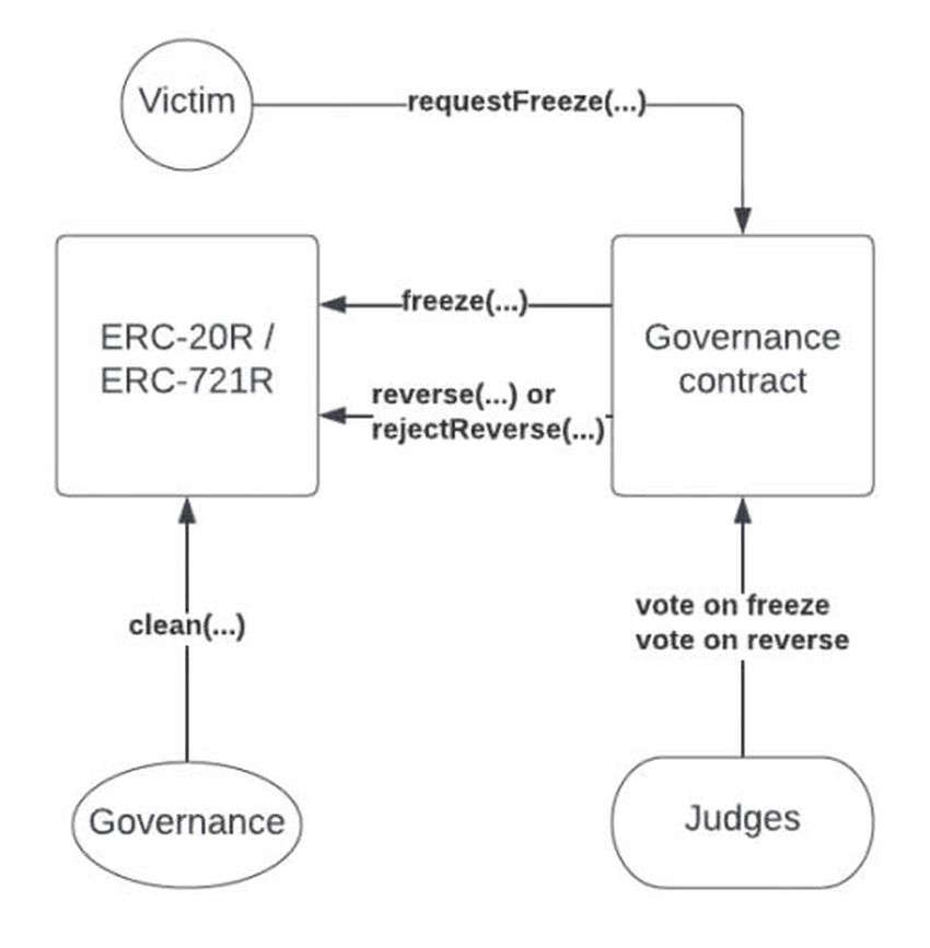 Los investigadores de Stanford, Kaili Wang, Qinchen Wang y Dan Boneh, han propuesto nuevos estándares de tokens Ethereum llamados ERC-20R y ERC-721R. Han sido diseñados como prototipos de suscripción voluntaria que respaldan la reversión de transacciones cuando la situación y la evidencia lo justifican.