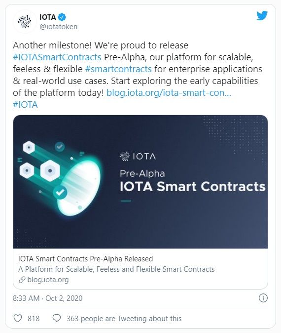 IOTA anunció el lanzamiento de la plataforma Pre-Alpha del IOTA Smart Contract Protocol (ISCP).