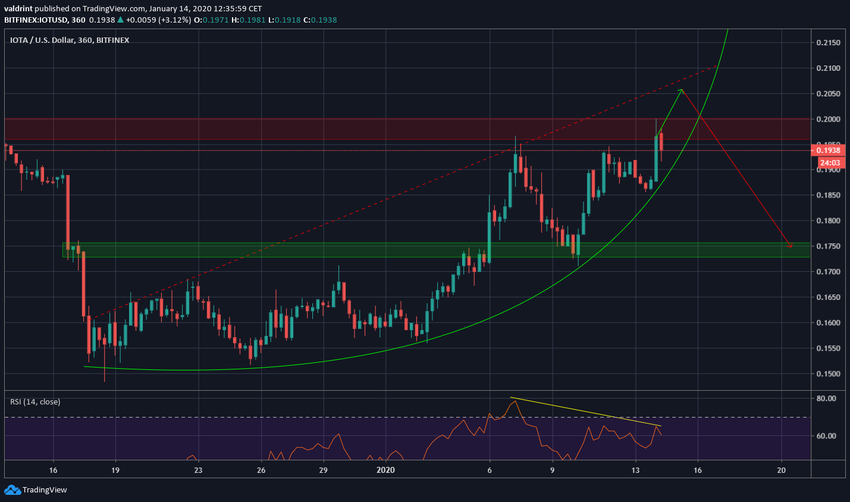 El precio de la IOTA ha alcanzado un área de resistencia significativa y parece probable que disminuya.
