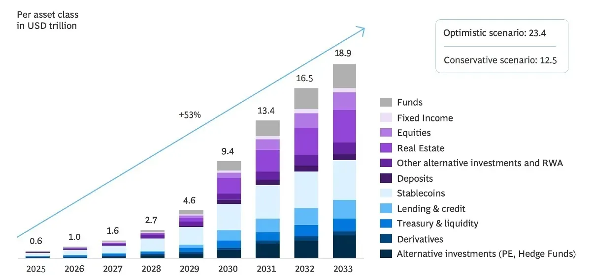 El mercado de activos del mundo real tokenizados (RWA) ha ganado impulso a lo largo de varios ciclos cripto, ahora proyectado a valorarse en 2,08 billones de dólares, con pronósticos que alcanzan los 18,9 billones de dólares para 2033. Lo que hace que este mercado sea particularmente atractivo es su capacidad para fraccionar la propiedad, permitiendo a los inversores más pequeños acceder a diversas clases de activos.