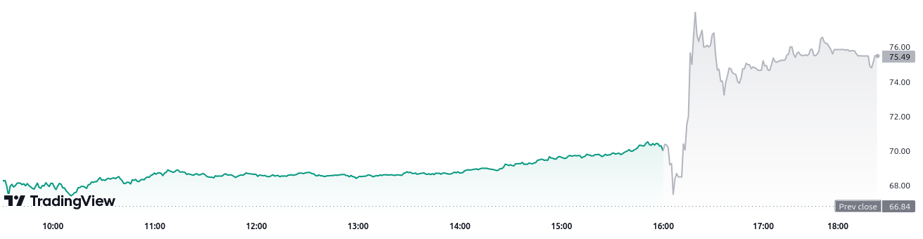 Como resultado del anuncio, el precio de la acción de la empresa aumentó aproximadamente 10% y cotiza actualmente en 75.49 dólares.