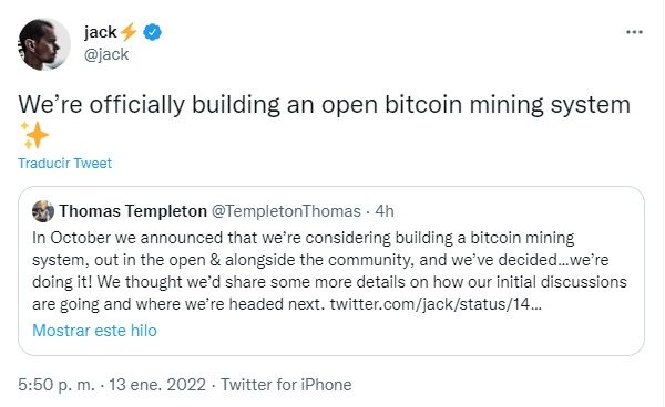 El fundador y CEO de Block (anteriormente Square), Jack Dorsey, confirmó los planes de la empresa para construir un sistema de minería de Bitcoin (BTC).
