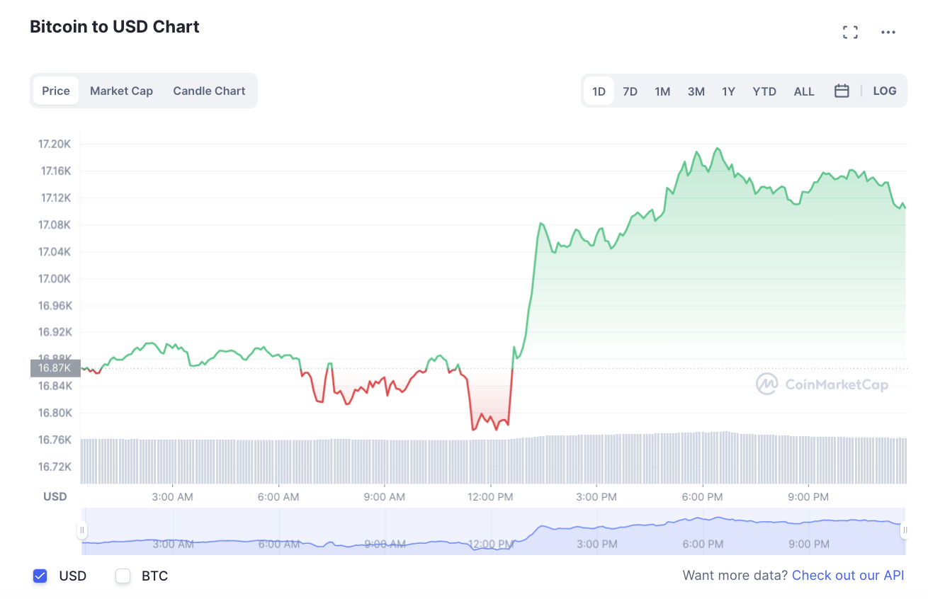 Además, Powell reiteró que la política monetaria continuará siendo restrictiva hasta que la tasa de interés baje a 2%. En tanto, las criptomonedas subieron entre 3 y 5%, Bitcoin rebasó el piso de los 17,000 dólares y Ethereum subió 5,66% hasta 1,300 dólares.