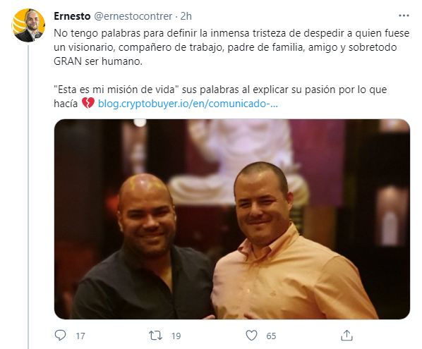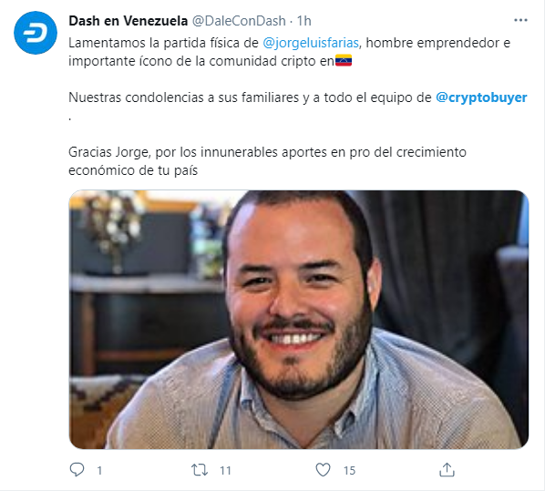 Ernesto Contreras, también venezolano, Head of Business Development de Dash Core Group y gran amigo de Jorge Farías fue uno de los primeros en comentar la lamentable pérdida:
