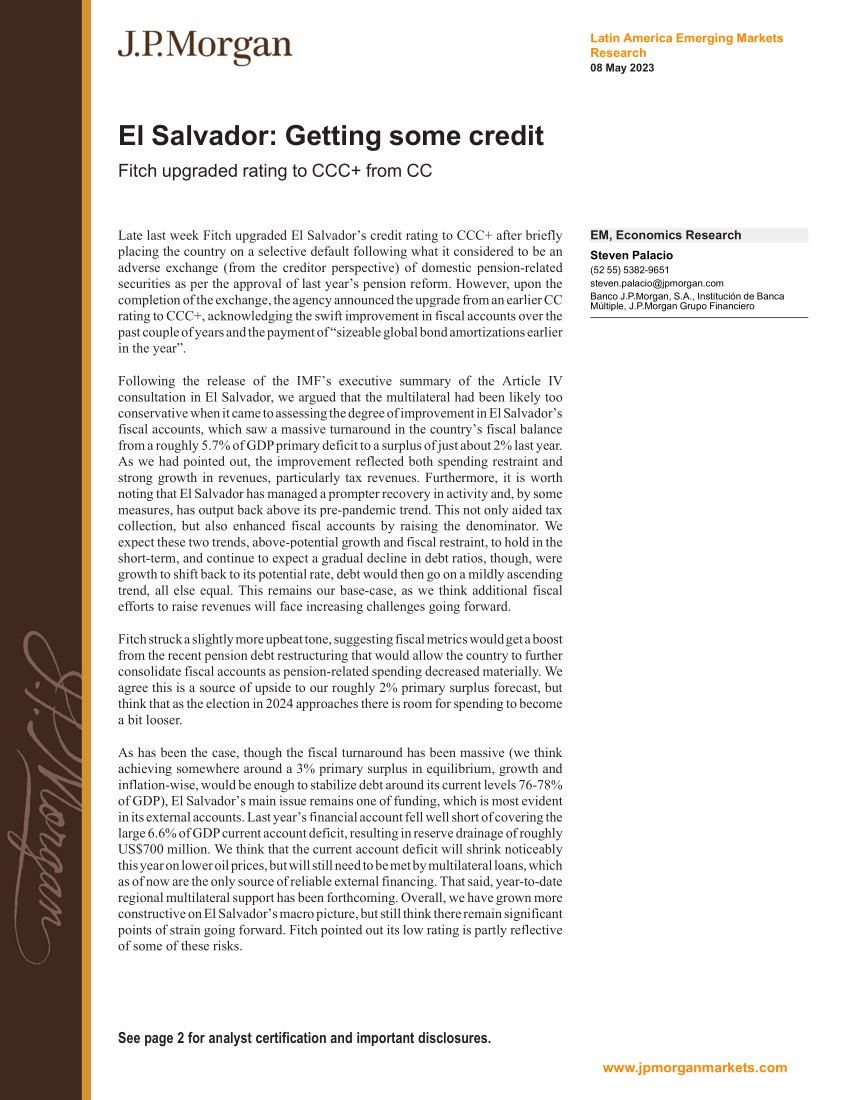 “Los chicos de FIAT en JPMorgan dicen que El Salvador finalmente está “obteniendo algo de crédito”.