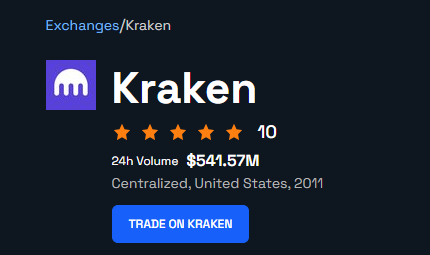 Según los datos de BeInCrypto, Kraken es uno de los principales exchanges de criptomonedas en Estados Unidos y procesa más de 500 millones de dólares en operaciones en las últimas 24 horas.