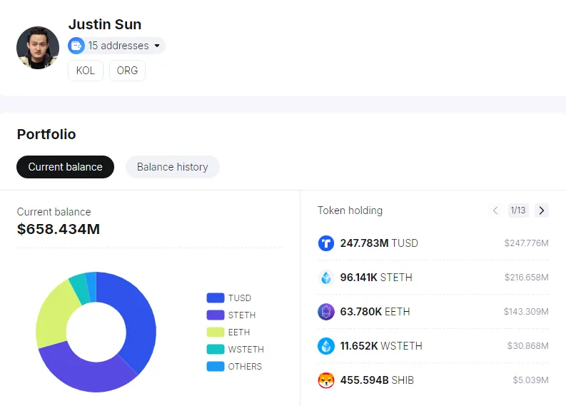 A pesar de que el precio actual de trading de Ethereum está muy por debajo de su precio promedio de compra, las direcciones de monedero de Sun todavía mantienen 1,554 ETH, valorados en alrededor de 3,55 millones de dólares. Además, holdea cantidades significativas de stETH, EETH y wstETH.