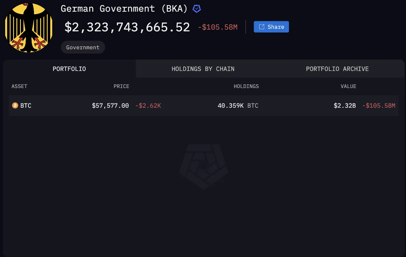 El gobierno alemán mueve Bitcoin por $174,3 millones