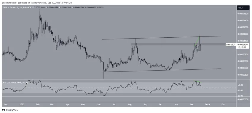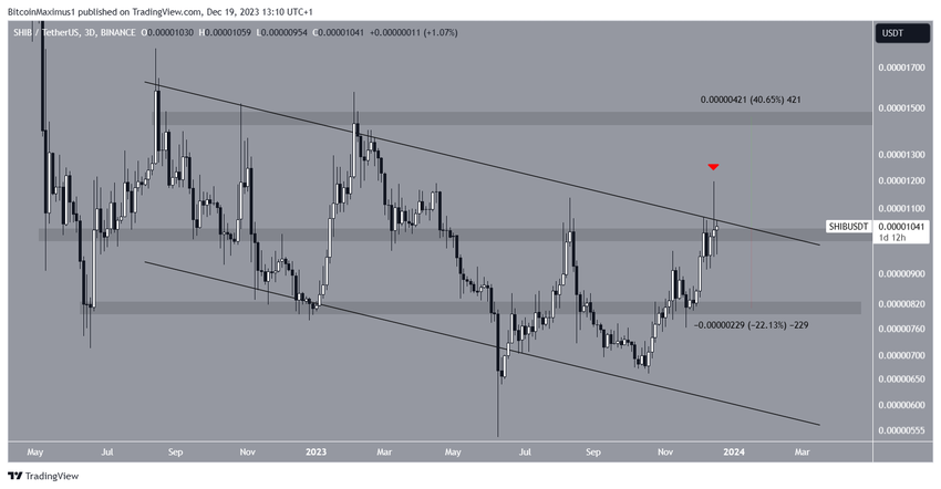 Sin embargo, el movimiento ascendente no pudo mantenerse y el precio de Shib Inu cayó el mismo día, cayendo por debajo del área de resistencia.