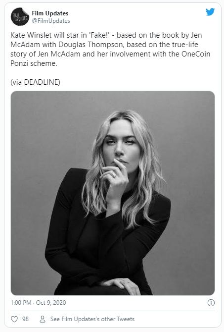 La actriz y ganadora del Oscar Kate Winslet protagonizará y coproducirá ¡Fake!, una adaptación cinematográfica de la infame cripto estafa OneCoin.