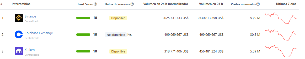 Kraken es actualmente el tercer exchange centralizado de criptomonedas más grande a escala global. Al momento de la publicación, posee un volumen de trading de 456,4 millones de dólares en las últimas 24 horas, según CoinGecko.