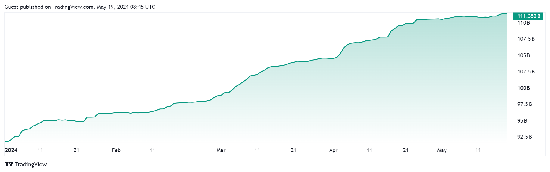 Tether tiene una capitalización de mercado de más de 110 mil millones de dólares, lo que representa alrededor del 69% de la cuota de mercado.