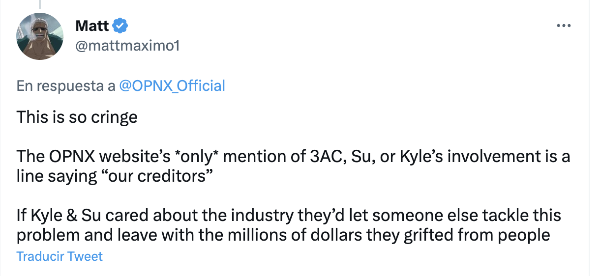 OPNX, el exchange especializado en reclamos de bancarrotas cripto| concebido por los cofundadores de Three Arrows Capital, Su Zhu y los fundadores de Kyle Davies Coinflex, se puso en marcha,