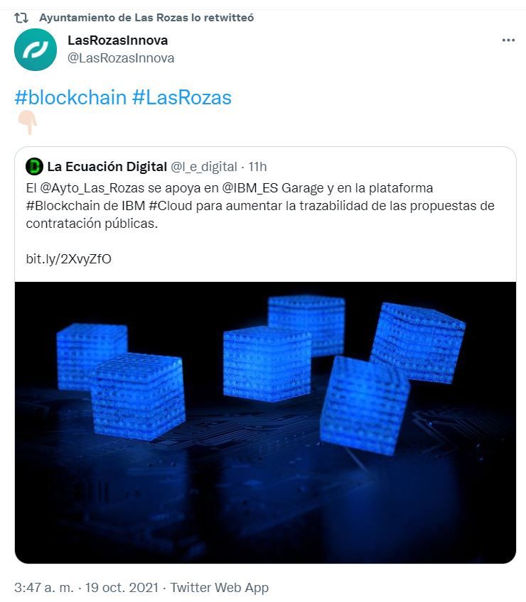 El Ayuntamiento de Las Rozas se asoció con IBM para integrar la tecnología blockchain en su sistema de gobernanza, contrataciones públicas, y para transparentar la relación entre sector público y empresarios.