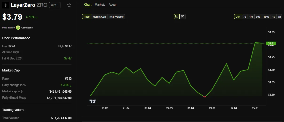 Datos de BeInCrypto muestran que el token ZRO de LayerZero ha aumentado casi un 5% desde que la sesión del viernes abrió. Al momento de escribir esto, se negociaba a 3,79 dólares. Además del optimismo del mercado en general, el aumento se produce ya que los expertos de la industria cripto ven esta resolución como una victoria estratégica para LayerZero: