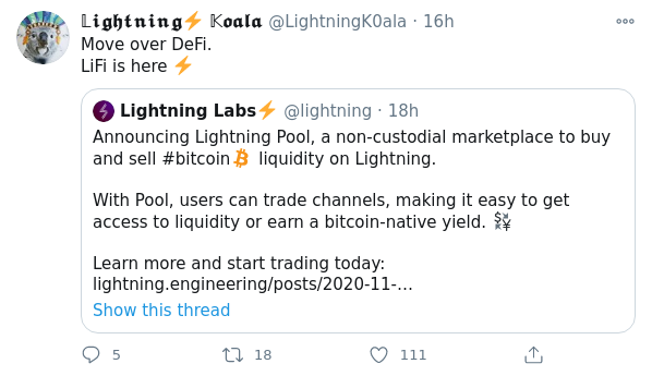 Elizabeth Stark, la CEO de Lightning Labs, explicó en un tweet que Lightning Pool brinda a los usuarios “la capacidad de ganar intereses en BTC sin renunciar a la custodia de los fondos“, llamándolo un “cambio de juego” y diciendo que “mejora la experiencia Lightning”.