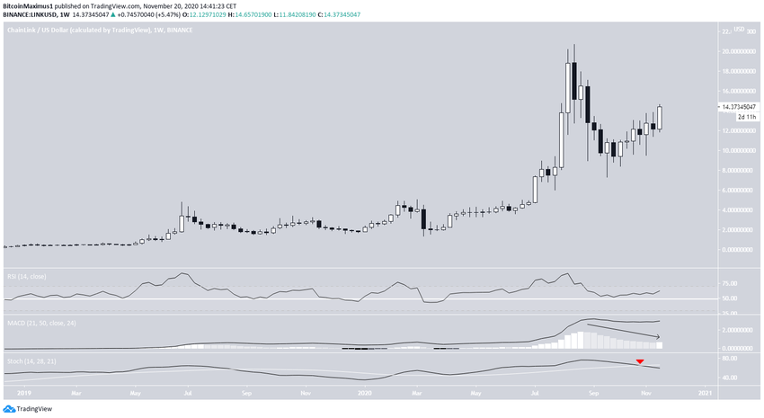 El precio de ChainLink (LINK) ha salido de la zona de resistencia de 13,10 dólares y lo ha validado como soporte después. Se espera que el LINK siga aumentando hacia la siguiente área de resistencia más cercana, como se indica a continuación.