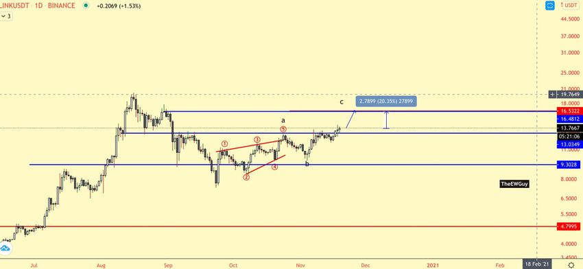 Para concluir, aunque se espera que el precio del LINK aumente hacia al menos 15,40 dólares, es probable que el actual movimiento alcista sea correctivo en lugar de ser el comienzo de un nuevo impulso.