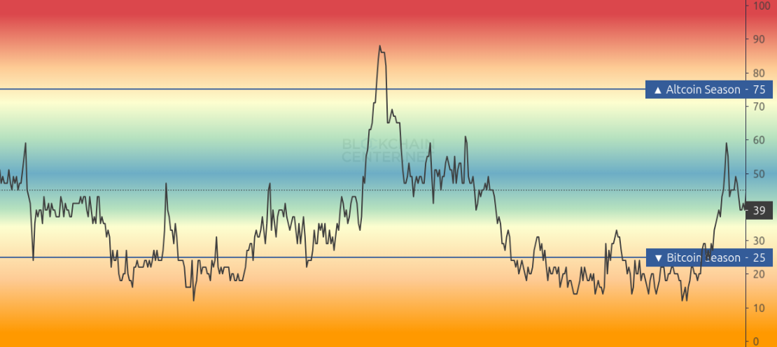 Posteriormente, entre 2019 y 2020, el dominio de Bitcoin repuntó impulsado por el interés institucional y la expectativa del tercer halving, alcanzando niveles superiores al 60%. Sin embargo, las dinámicas cambiaron nuevamente entre 2021 y 2022, cuando el auge de proyectos DeFi y NFT volvió a reducir el dominio de BTC a la franja del 38-40%.