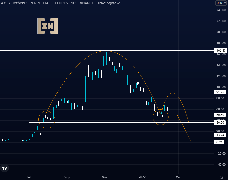 La proyección bajista de AXS desde principios de diciembre del 2021, ha cumplido con el primer objetivo alcanzar los 50 dólares de manera correctiva.