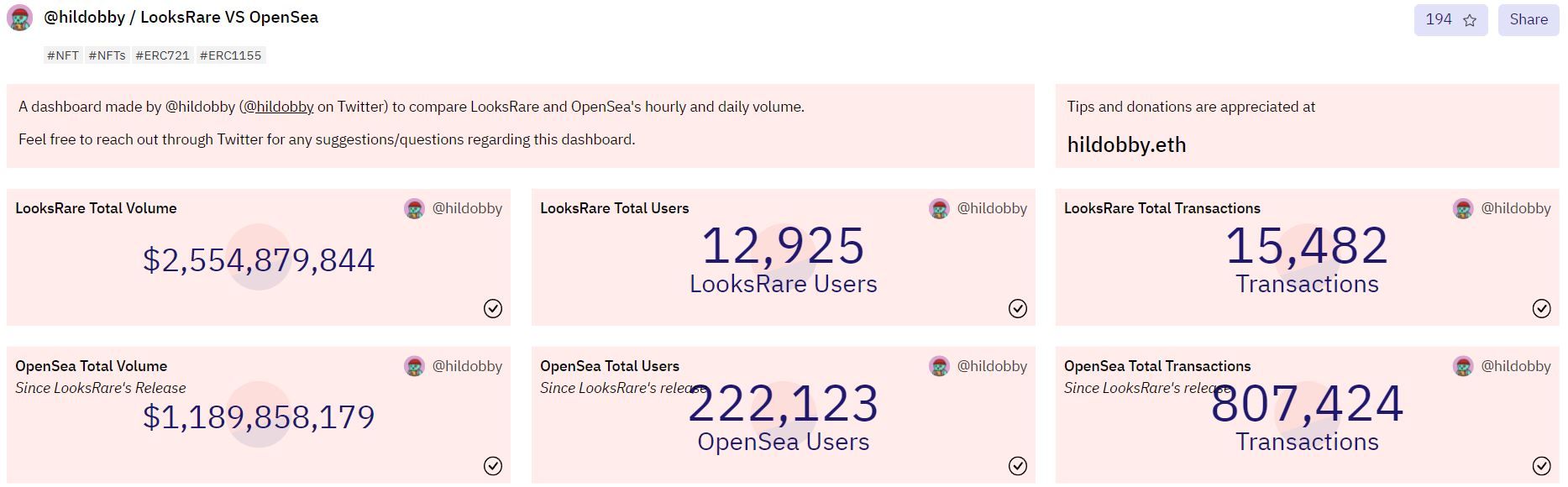 Las ventas de NFT totalizaron $2,1 mil millones durante los primeros 10 días del año. El staking de tokens LOOKS puede generar hasta un 889,88 % de tasa de porcentaje anual. Bored Ape #4937 se vendió en el marketplace, y el comprador recibió $ 3.5K en recompensas. El vendedor ahorró $1500 en tarifas y obtuvo $3,500 en recompensas. En OpenSea, el comprador y el vendedor no habrían recibido nada excepto el NFT.