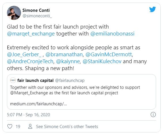 Marqet será el primer proyecto que se ejecutará en el marco de “Fair Launch Capital“, una organización que tiene como objetivo otorgar subvenciones a través de sus patrocinadores a proyectos, lo que les permite tener un lanzamiento justo.