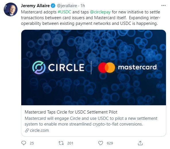 Tal como informó BeInCrypto, el pasado mes de febrero la empresa multinacional de servicios financieros anunció que comenzaría procesar pagos con criptomonedas directamente en su red Mastercard.