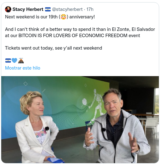 La pareja de especialistas en Bitcoin, Stacy Herbert y Max Keiser causaron entusiasmo y emoción entre sus seguidores salvadoreños al anunciar para la misma fecha tanto la celebración de su aniversario, como una conferencia sobre libertad financiera y criptomonedas.