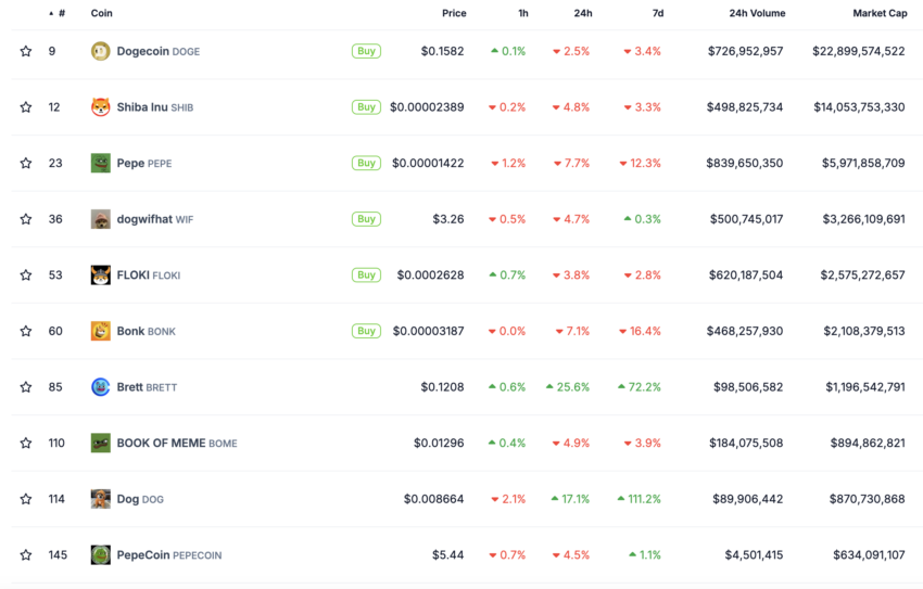 En el momento de escribir este artículo, Dogwifhat ocupa el cuarto lugar en el ranking de las criptomonedas meme más capitalizadas. Según CoinGecko, el valor de mercado de WIF es de 500,7 millones de dólares. Memecoin sólo es superado por los veteranos del sector: Dogecoin (DOGE), Shiba Inu (SHIB) y Pepe (PEPE).