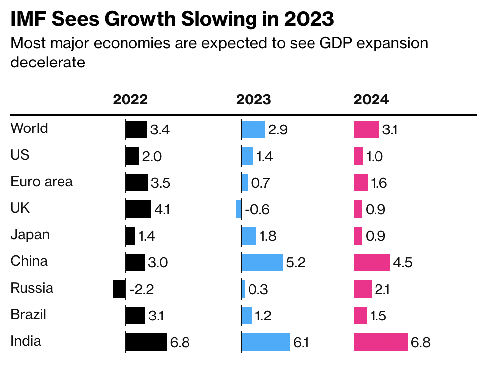 En el informe WEO de octubre de 2022, el FMI pronosticó un crecimiento del 2,7% para la economía mundial. Pero el informe de enero elevó el pronóstico en 0,2% a 2,9%, aumentando las esperanzas de una recuperación económica mundial más rápida. El fondo también espera que el crecimiento toque fondo en 2023 y se acelere a partir de 2024.
