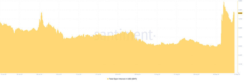 El desarrollo provocó un aumento en el interés abierto de QNT, lo que indica que los participantes del mercado participaron en una amplia actividad especulativa en torno al token.