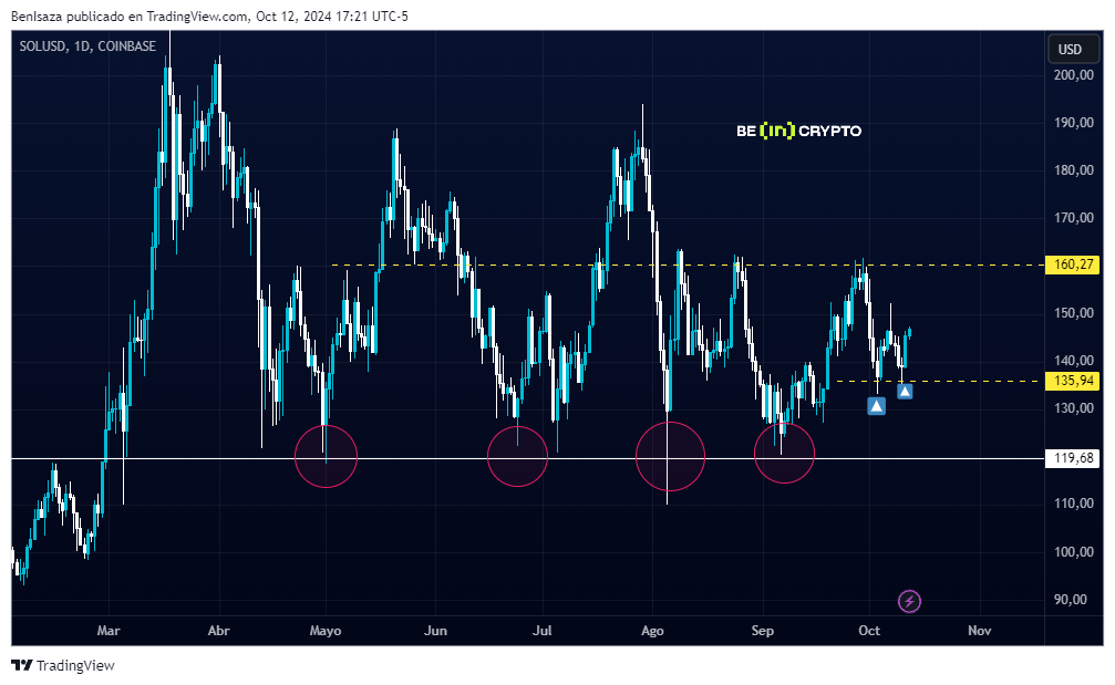 Finalmente, Solana ha logrado mantener y respetar el nivel de los 135 dólares, lo que supone una continuidad alcista con objetivo los 160 dólares.