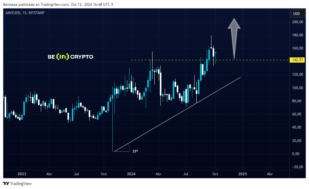 Mientras AAVE se mantenga sobre el área de los 140 dólares, supone una continuidad alcista con objetivo los 210 dólares. Sin embargo, según sea el efecto en el mercado puede incluso escalar a los 280 dólares.