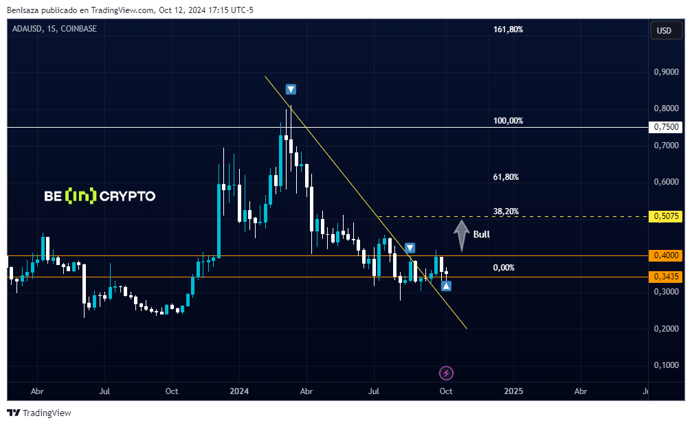 SponsoredEn cuanto al precio de ADA, de ser respetado el nivel de los 0.34 dólares, supone un cambio de tendencia poniendo como objetivo los 0.5 dólares. De presentarse un bull run entre finales de 2024 y 2025 el precio podría llegar nuevamente a los 0.75 dólares y 1 dólar.