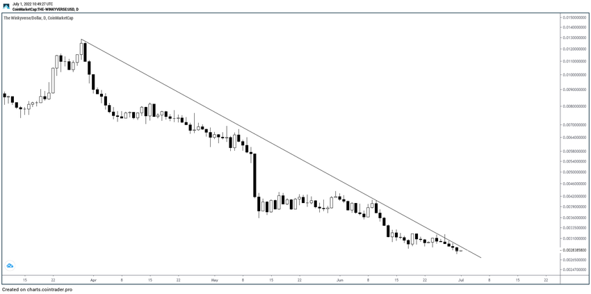 WNK ha estado cayendo por debajo de una línea de resistencia descendente desde el 28 de marzo y alcanzó un nuevo mínimo histórico el 30 de junio.