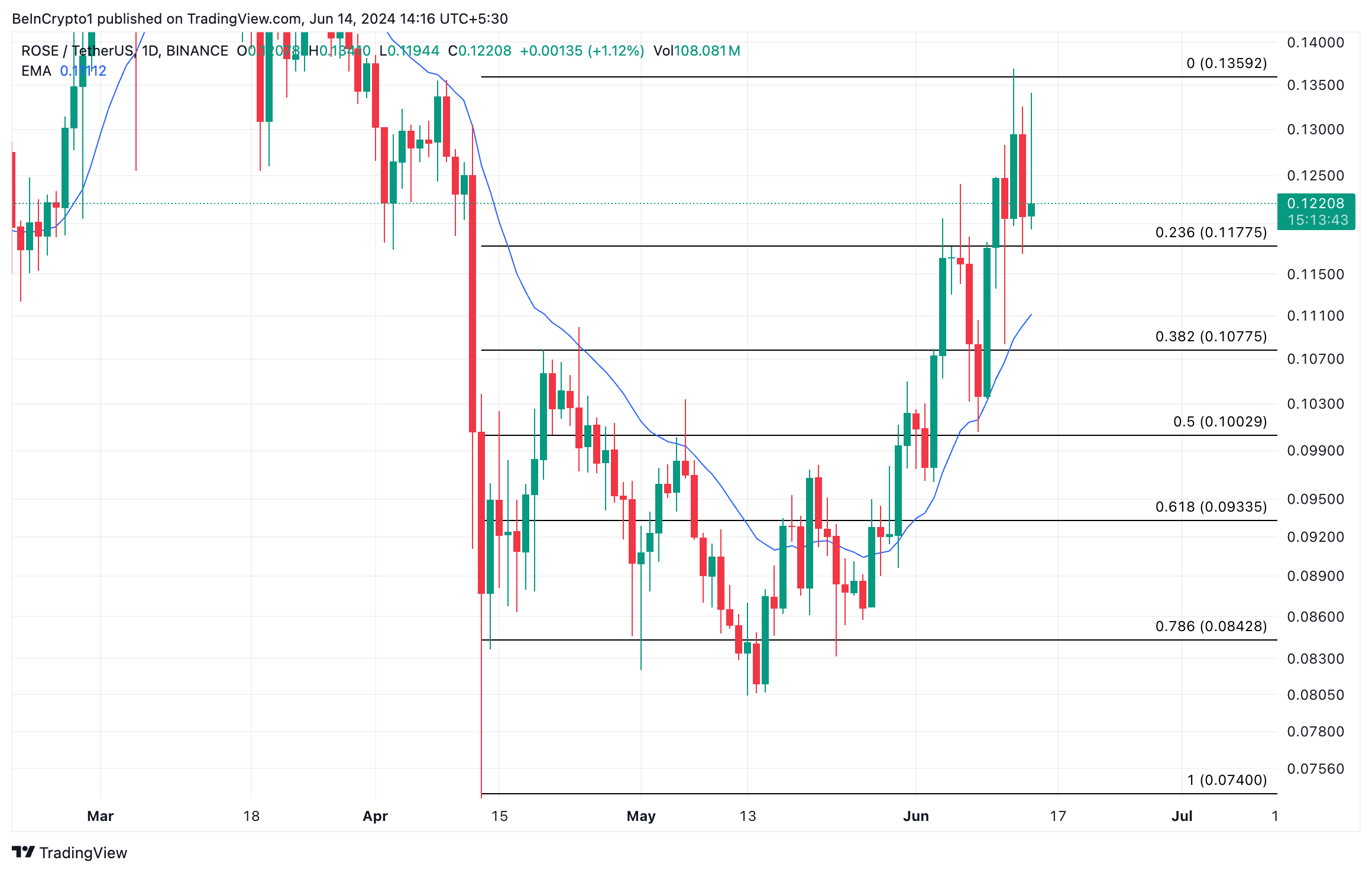 Si se mantiene esta tendencia, el precio de ROSE podría aumentar un 8% y negociarse a 0.13 dólares.