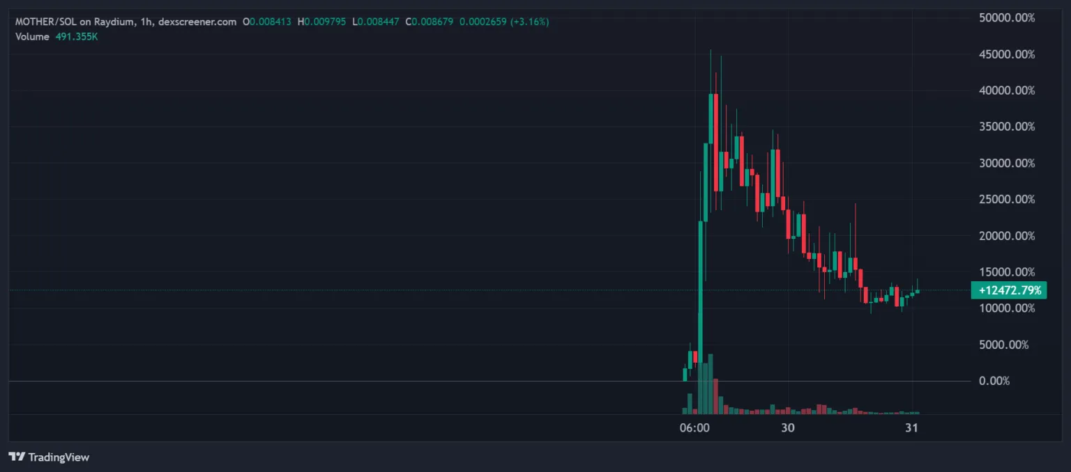 En comparación con IGGY, MOTHER tuvo un debut más fuerte. Alcanzó una capitalización de mercado de 18,2 millones de dólares. Los datos de DEX Screener revelan que MOTHER se negocia ahora a 0,008633 dólares, con su capitalización de mercado a 9,2 millones de dólares.