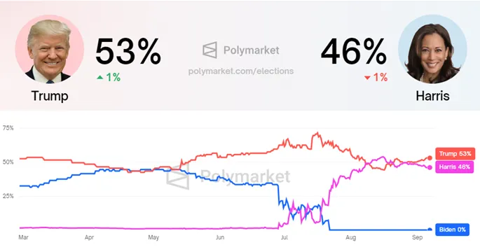 En febrero, Putin le dijo a la televisión rusa que Joe Biden sería su elección preferida para la presidencia de Estados Unidos. Sin embargo, después de que Biden se retirara de la carrera en julio, Kamala Harris asumió como titular de la candidatura demócrata. Este cambio tuvo un gran impacto en las memecoins de PolitiFi y plataformas de predicción como Polymarket.