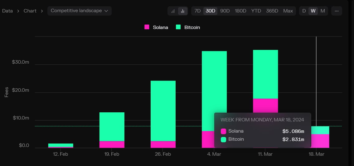 Por otra parte, @SolanaFloor compartió recientemente a través de su cuenta en X (antes Twitter) que Solana ha superado a Bitcoin en ingresos por comisiones durante los últimos 7 días.