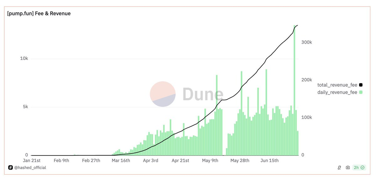 En la misma línea, Pump.fun superó a Ethereum en ingresos diarios, alcanzando 2 millones de dólares el 30 de junio de 2024.