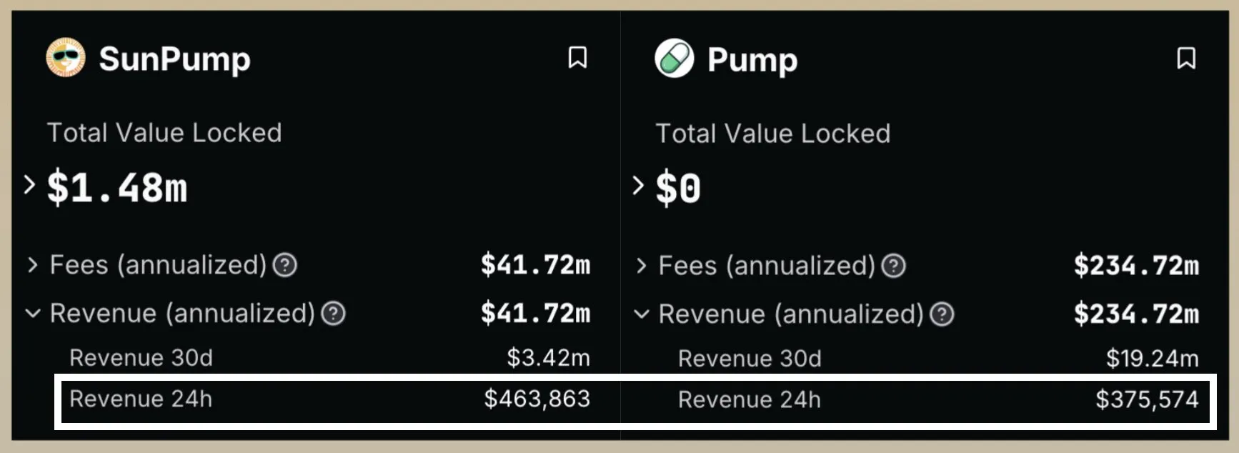 Mientras tanto, SunPump, el generador de memecoins de la blockchain, está ganando gradualmente cuota de mercado, desafiando a Pump.fun de Solana.