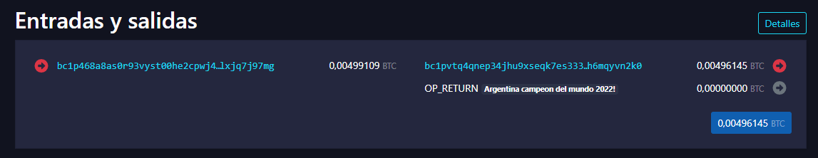 Un usuario de Twitter decidió utilizar la blockchain de Bitcoin para grabar un particular mensaje. Quiso inmortalizar que Argentina resultó campeón del mundo en Qatar 2022.