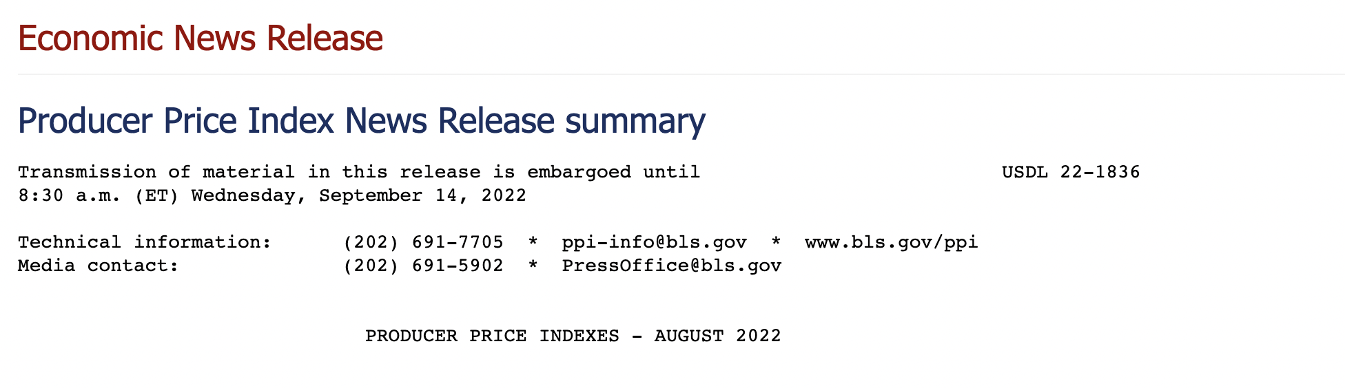Las nuevas cifras del índice de precios al productor de agosto de 2022 muestran una disminución del 0,1% en comparación con julio de 2022. Esta es la segunda disminución consecutiva del IPP, lo que podría significar que el IPP ya alcanzó su punto máximo, lo que es un buen augurio para los activos de mayor riesgo a corto y largo plazo. término medio.